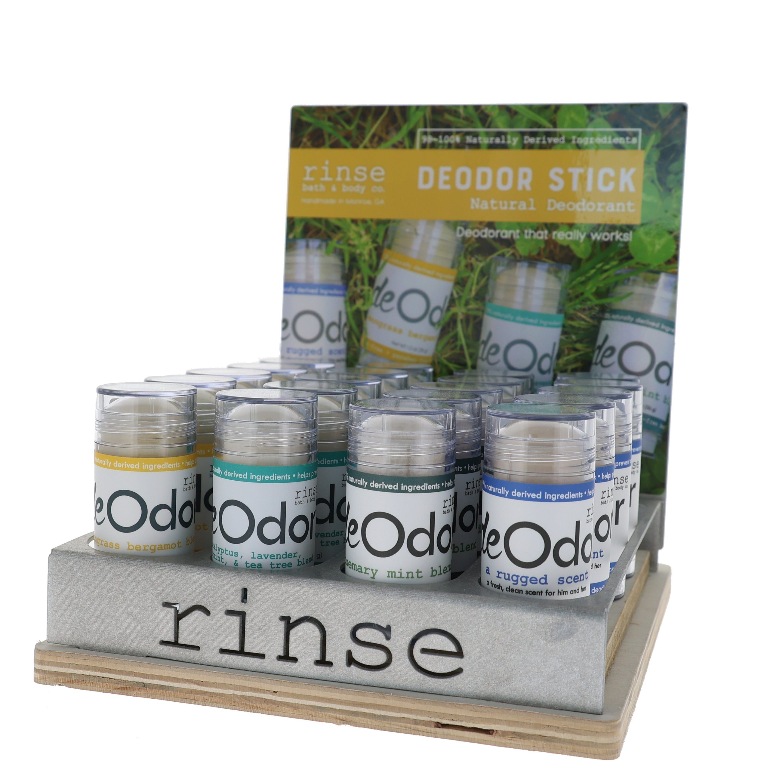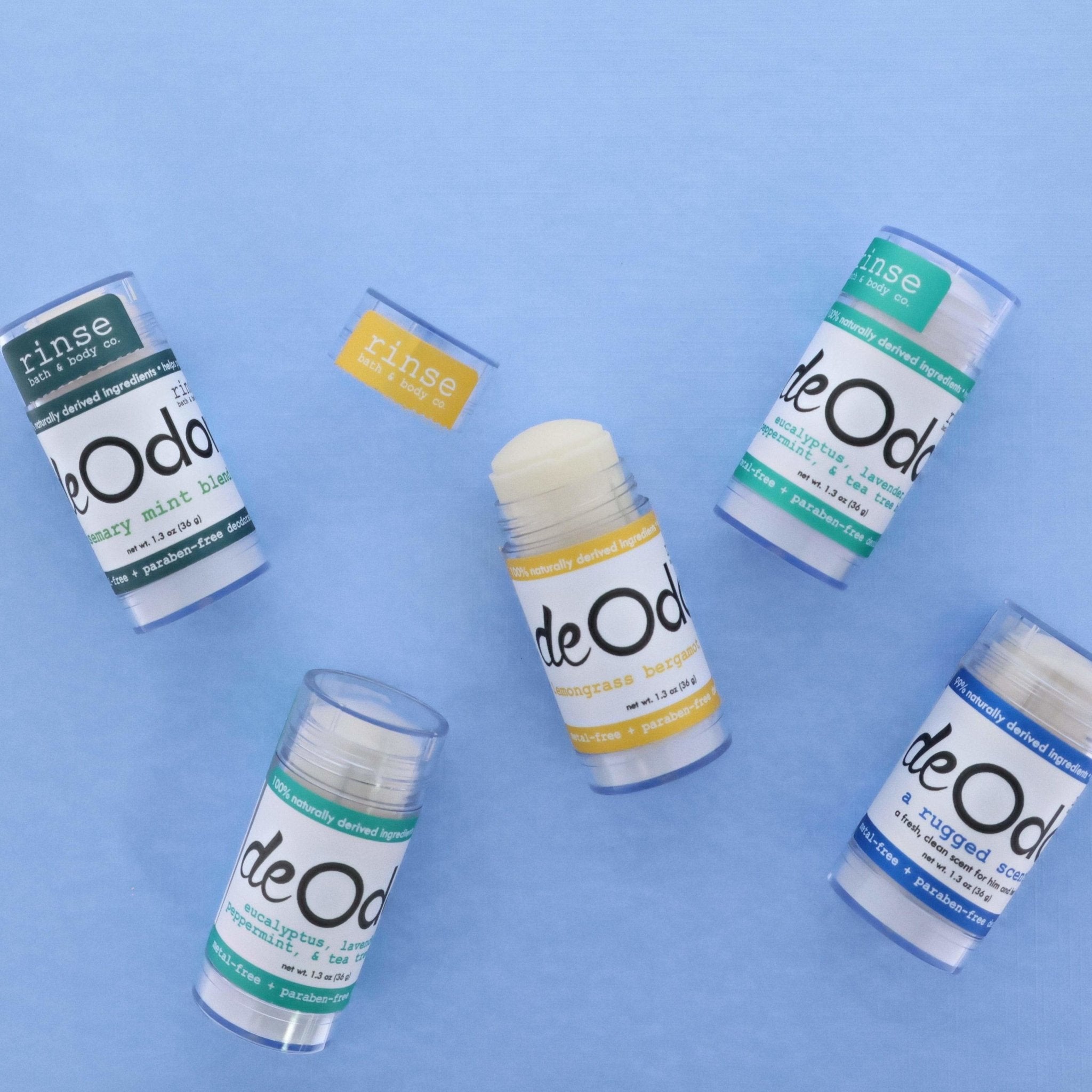 - 4 flavors of deOdor Sticks (5 of each flavor) – Lemongrass Bergamot. Original. Rosemary Mint. Rugged