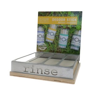 - Backplate featuring product information including that the deOdor Sticks are 100% natural. metal free & paraben free