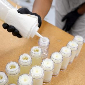 Ingredients: Cocoa Butter. Coconut Oil. Shea Butter. Beeswax. Arrowroot Powder. Baking Soda. Probiotic & Essential Oil Blend of Rosemary & Peppermint.